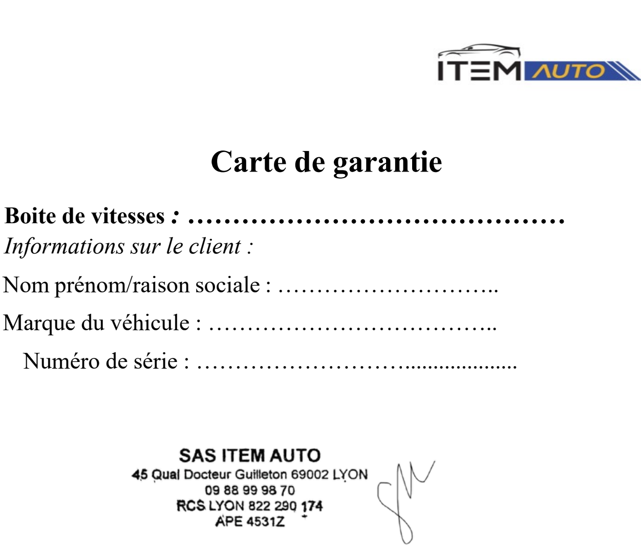 Carte de garantie boîte de vitesses DQ200 et DQ250